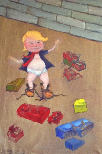 Building the wall (circa 2019) oil on canvas (24" x 36")