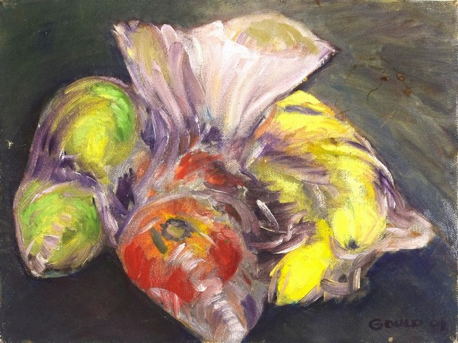 Fruit in bag (2001) oil on canvas (12" x 9")