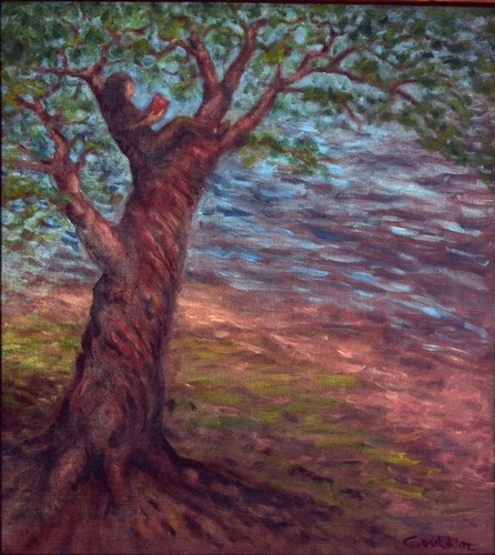 Girl in tree (2002) oil on canvas (18" x 20")