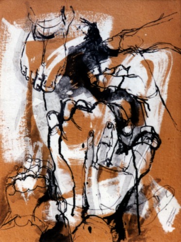Hands and feet (1959) gesso, ink and wash on oatmeal paper (17" x 23")