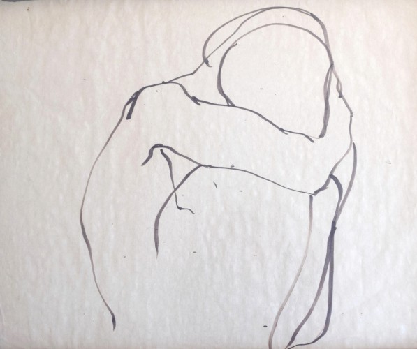 The hug (circa 1973) ink on paper (21.5" x 16.5")