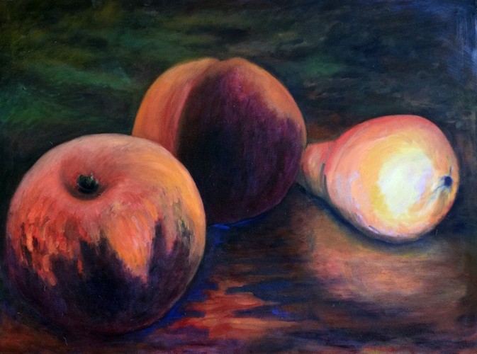 Peaches and pear (2001) oil on canvas (40" x 30")