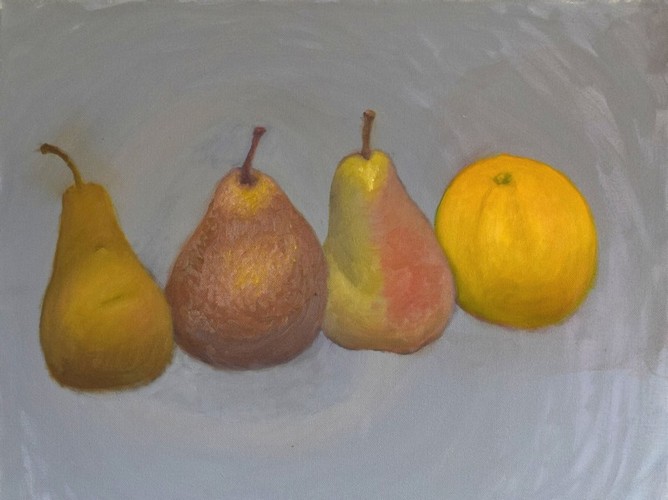 Pears and orange (circa 2015) oil on canvas (20" x 16")