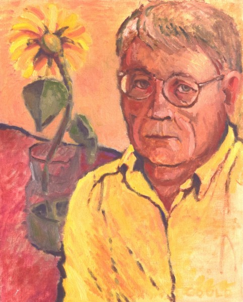 Gene Gould's art -- Third period -- SELF WITH FLOWER (2002) oil on canvas (16" x 20")