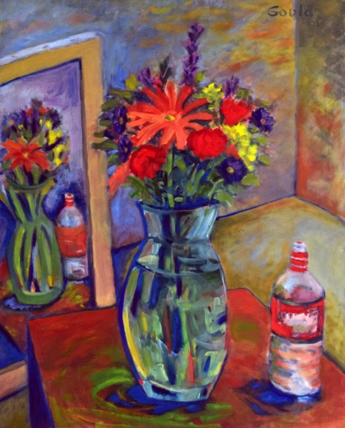 Gene Gould's art -- Third period -- BOUQUET AND BOTTLE (2001) oil on canvas (24" x 30")