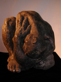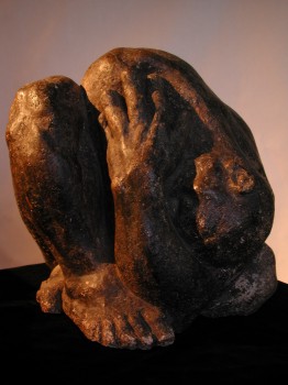"CROUCHING MAN" (roughly 13 inches in all dimensions)