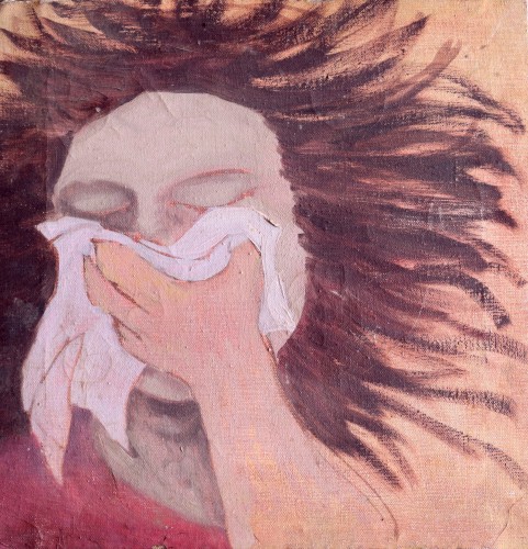 Sneezing (circa 1968) acrylic on canvas (13" x 13")