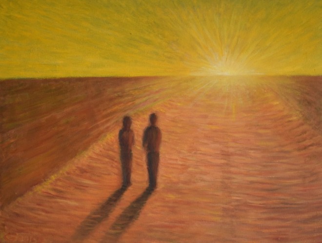 Recurring theme in Gene Gould's art: TWO PEOPLE WALKING AWAY
